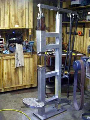 This is what I have been working on lately, this is a blacksmith's treadle hammer. I got the pic off the Internet. This one is like the one I am making but not as big. I am making mine out of a rail road tie, 6x6's, steel well pipe and other pieces of scrap metal.